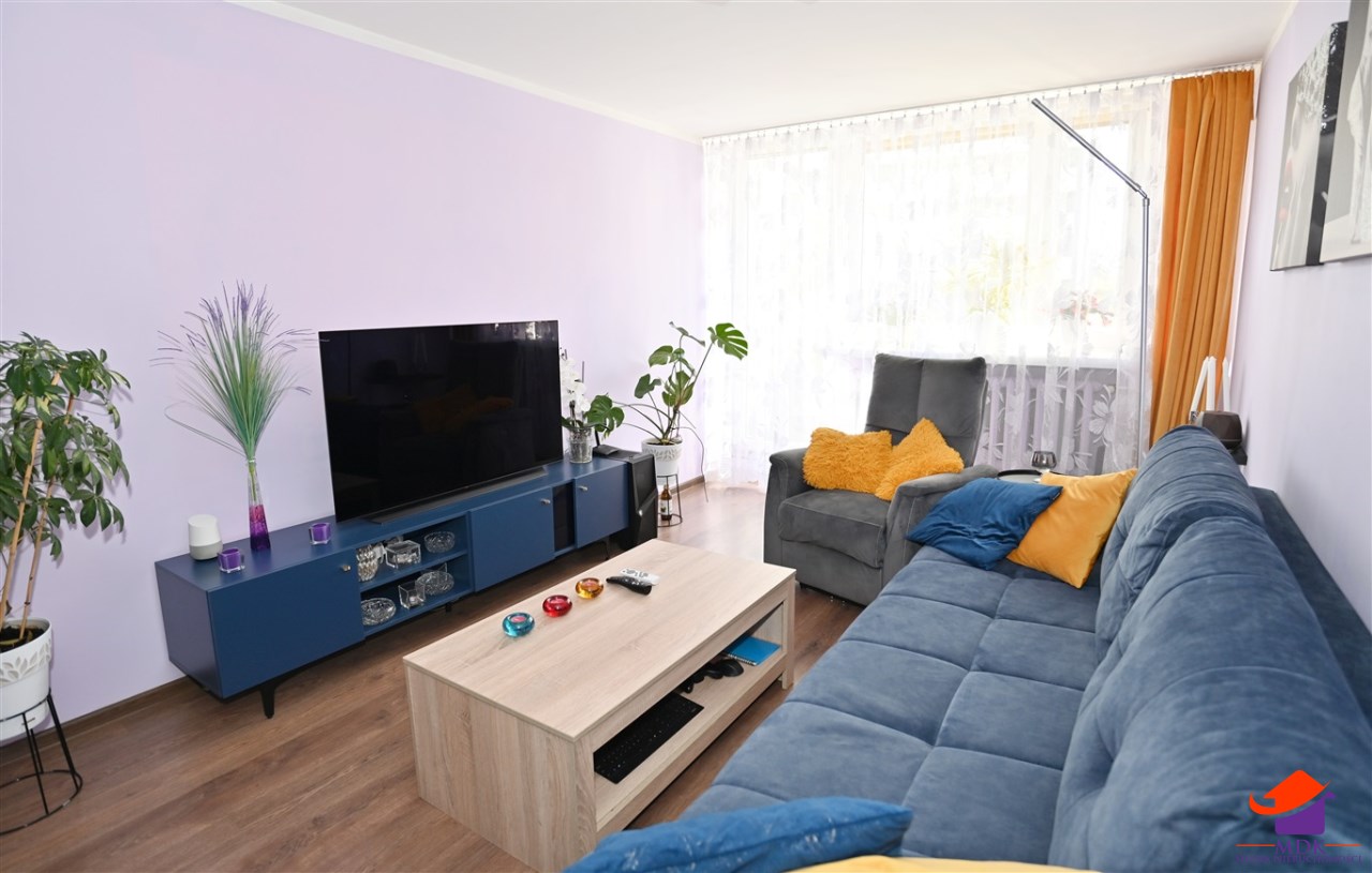 słonecznego salonu z wyjściem na balkon,
